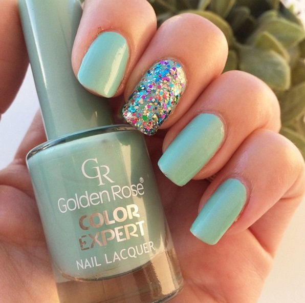 This powder with the tiniest sparkles will reveal the beauty of the mint color.