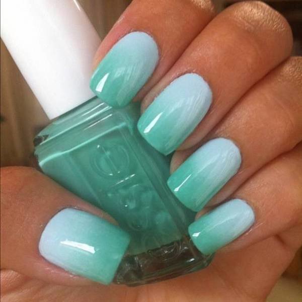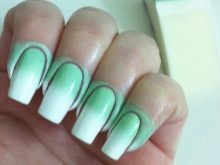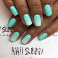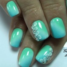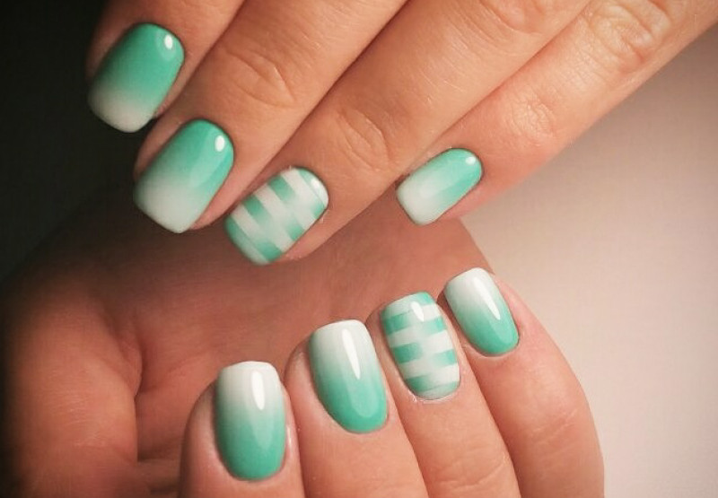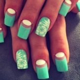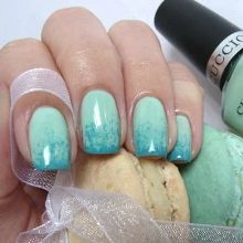 Ombre technique - one of the best, allowing to demonstrate the versatility of mint hue. For it use several related tones gel varnish. This season the mint gradient should be as natural as possible. Therefore, the transition from one shade to another should not be noticeable. Create such a design through a sponge or brush (each master has his own technique). Gradient is an excellent basis for decorating accent nails.