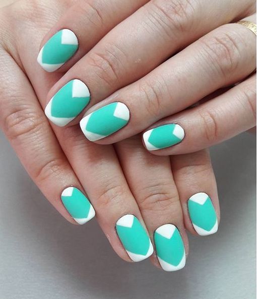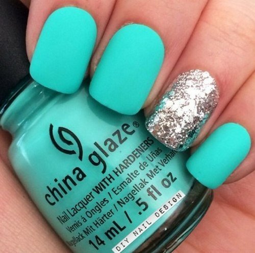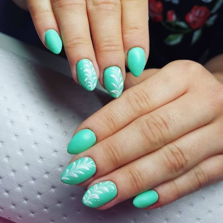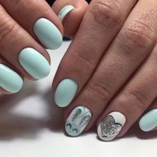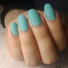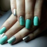 This design is created in different ways, while they are all based on the classical method of manicure. For example, you can initially use gel polish with a matte texture. If you do not like this option, some women prefer to keep their nails over the steam until the varnish has dried. There is a more progressive technique that allows you to create a high-quality and noble matte coating of nails. To achieve this effect, it is enough to cover the glossy mint varnish with a matte top.