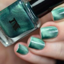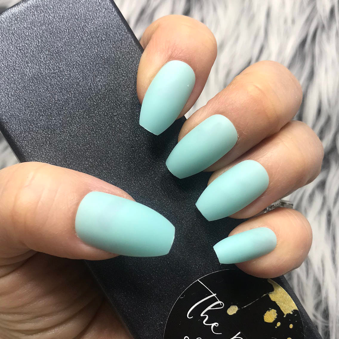 Mint color today found in the lines of each manufacturer of lacquer products. These are high-quality hybrid coatings, referred to as gel polishes due to the fact that they combine the properties of both gel and varnish. These pigmented coatings are an order of magnitude different from obsolescent ordinary varnishes, because with proper observance of the manicure technique, they hold onto nails for up to four weeks or more without the need for adjustment. What makes these coatings different is the fact that they need drying under a special (UV or LED) lamp.