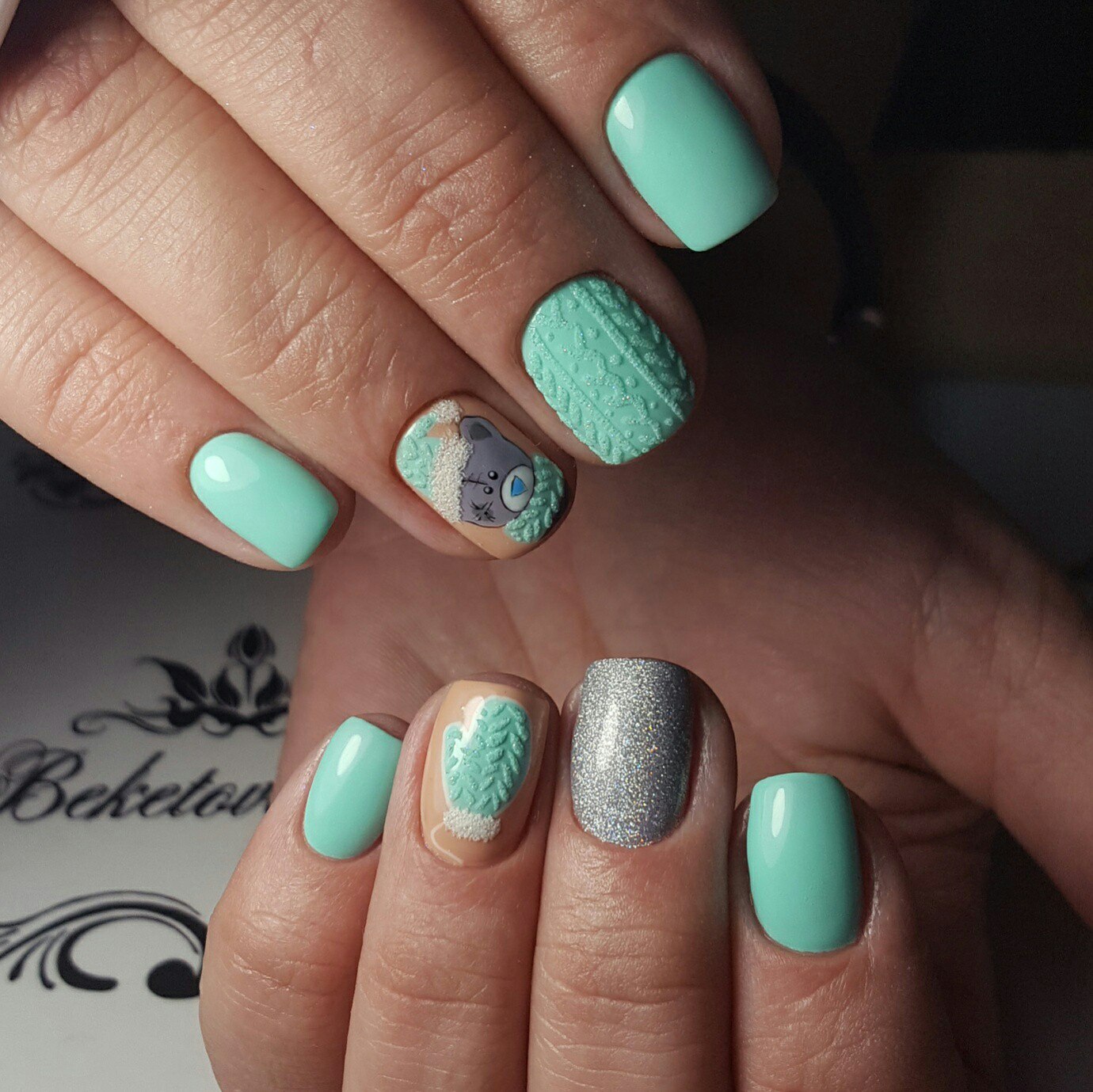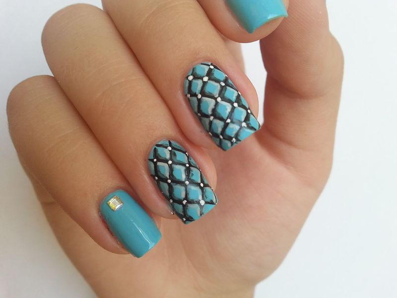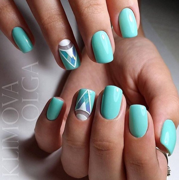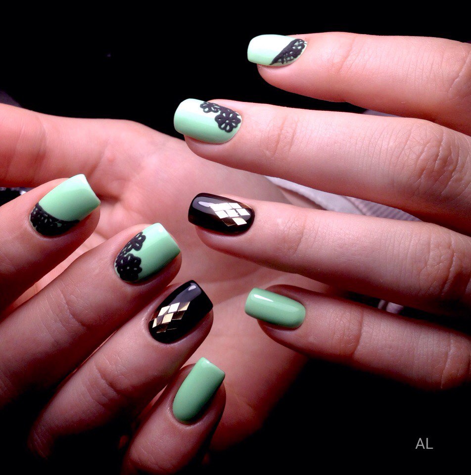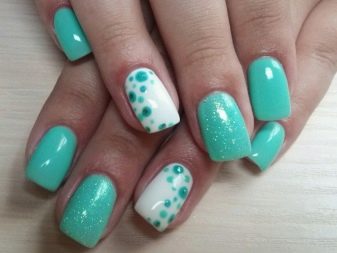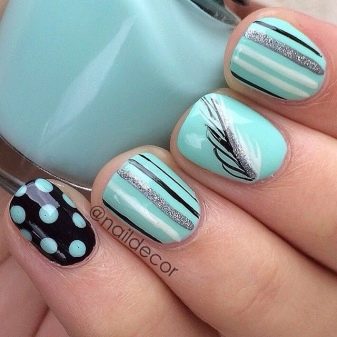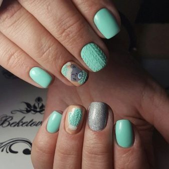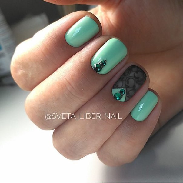 The mint shade of manicure is harmoniously combined with the following contrasts: