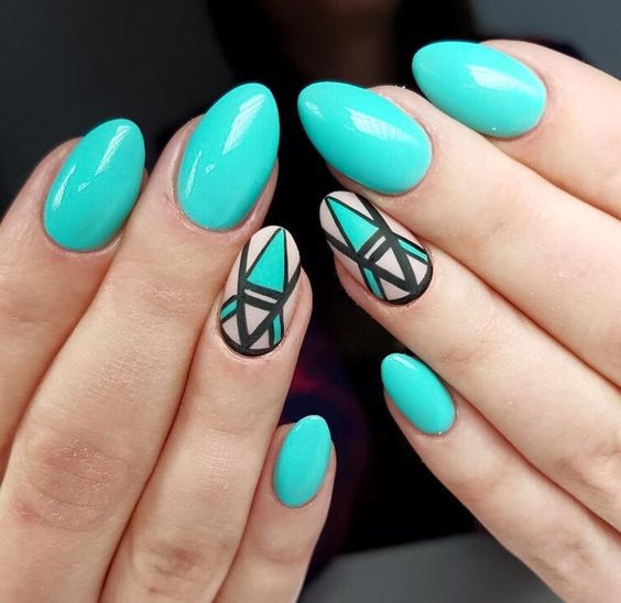 Turquoise color is quite gentle, it looks beautiful on the nails of different lengths and shapes. However, this does not mean at all that it will be perfect on nails-butterflies, which are distinguished by their great length and sharp edges. These nails themselves look somewhat aggressive, but also unnatural, which is unacceptable, because naturalness is in fashion today. According to the new trends of the nail industry, the shape may be different: straight, elongated and almond-shaped, which will please fans of such nail designs.