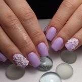 - Lavender or pale lilac shade in manicure. It is considered basic and is combined with all styles. It can be "worn" to work or go on a date, meet with friends.