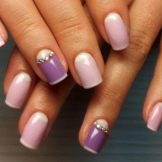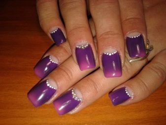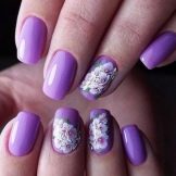 - Use violet tint. This refined and delicate color will give your claws expressiveness. He looks rich and aristocratic nails. With this color you can experiment, for example, by adding a rub. Try to rub in accents on some fingers - a manicure immediately acquires a certain zest.