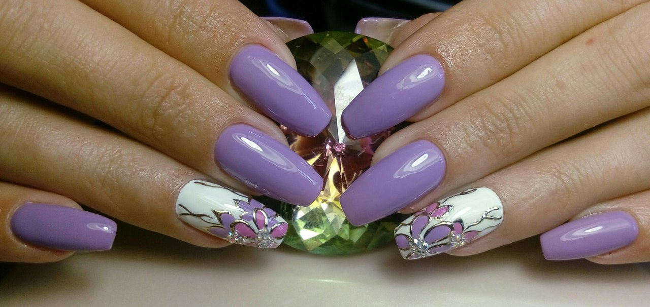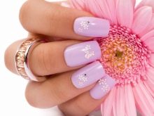 One of the calm but attractive colors in manicure is lilac. He is not flashy and looks very beautiful. This shade is reminiscent of lilac flowering, subconsciously looming associations with spring, blooming of flower buds and warmth. This all personifies the period of romance. Therefore, this shade is suitable for women who are refined and soft in character.