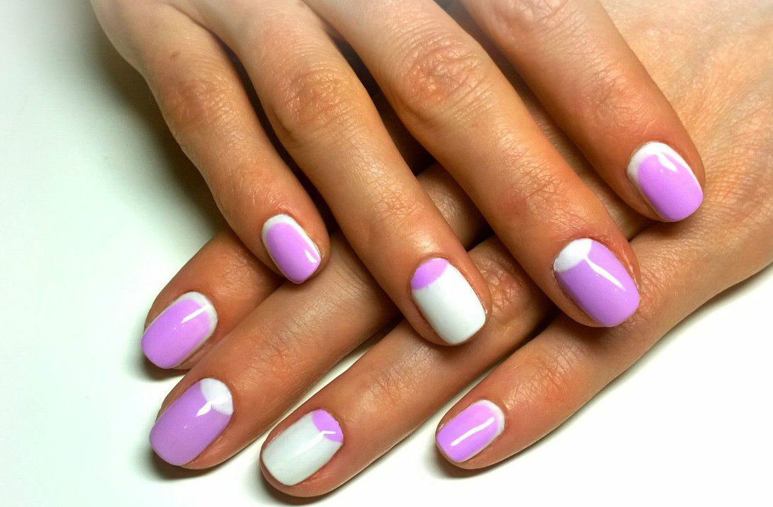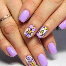 For an interesting design on short nails lilac color can be combined with different bright shades, for example, with mint. It is fashionable and catchy. Such a manicure will not go unnoticed.