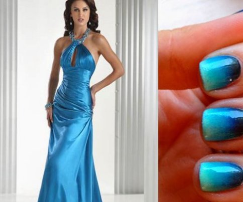 For a blue dress, the transition from blue to cornflower blue, from pale pink or any other pastel color to white, from lilac to blue will do.