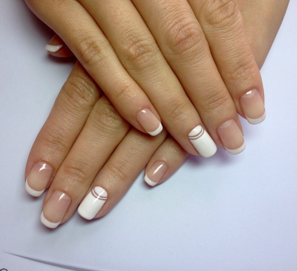 - French French manicure in fashion for many years and does not lose ground. The classic combination of white and white is perfect for any outfit. You can experiment a bit by replacing white with blue or lilac. Or make a french in cornflower and pink. You can vary the classics with a monochrome or matte texture.