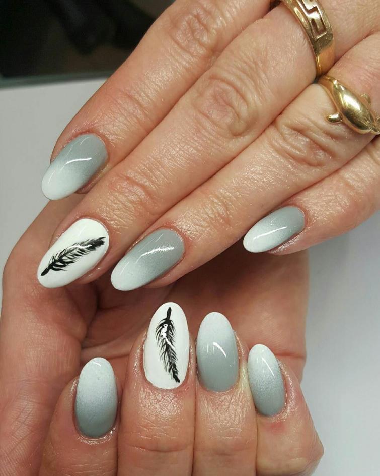 - Feathers continue to be actively used in nail design, although this idea has appeared quite a long time ago, this decor must be different from the chosen dress;