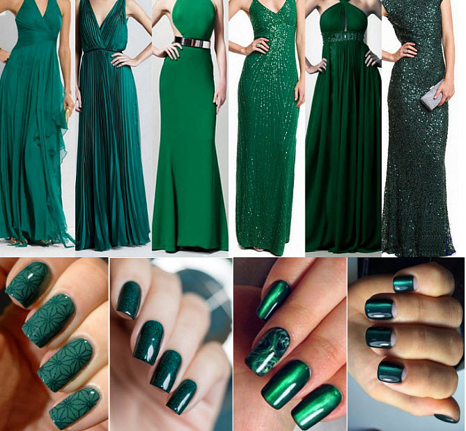 A large number of manicure options suitable for dresses in the green range, but not all. There is also no one combination that will look ridiculous and just plain ugly. In order not to be mistaken with the choice, you must use the following rules.