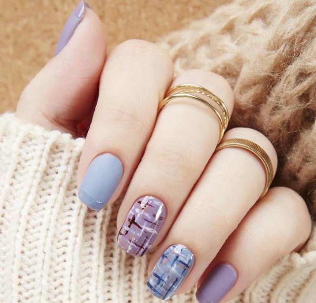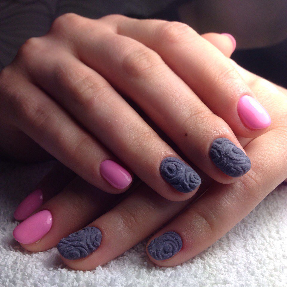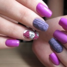 - make accent nails for different textures (for winter they create coatings with a knitted effect, for summer they choose varnishes with the texture of satin, for autumn - velvet, for winter - velvet).