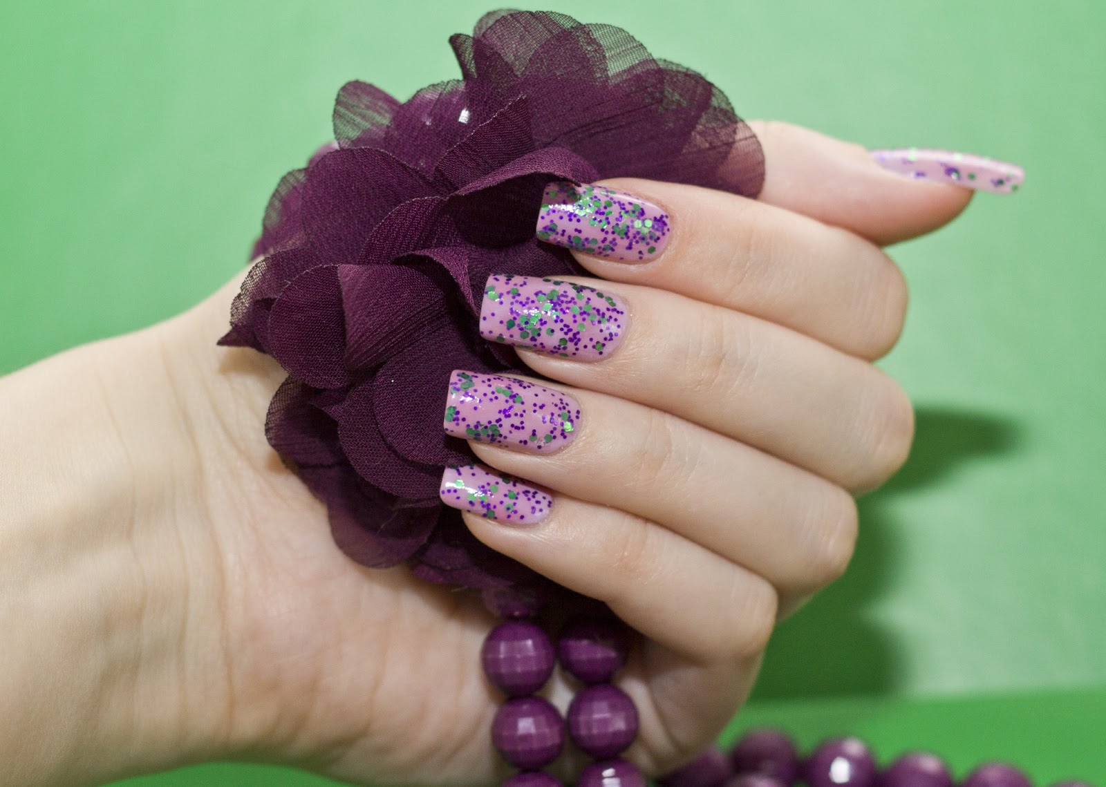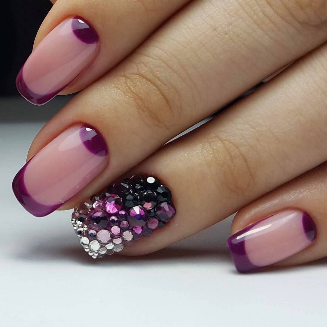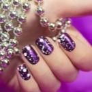 - Broths. Microscopic beads can be called an alternative to acrylic powder. Broths also create an unusual coating of nails, using them as accents lilac manicure. In addition, broths are often involved in drawing on accent nails. Such patterns complement small rhinestones.