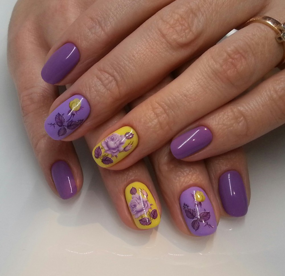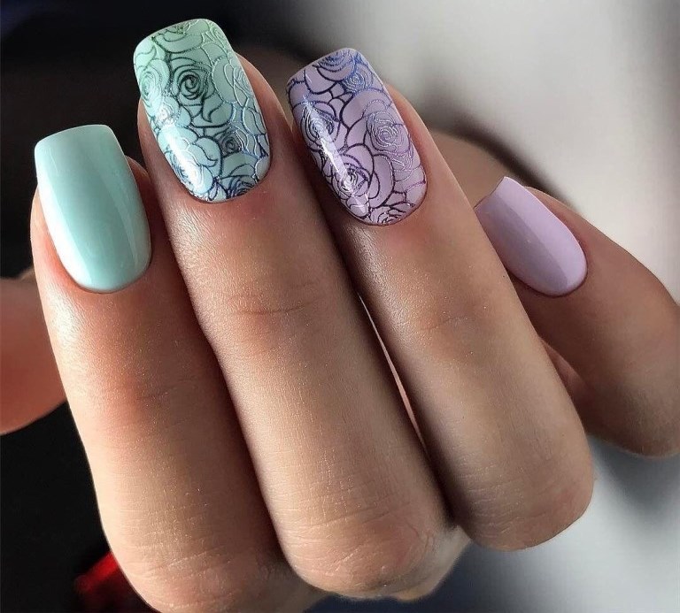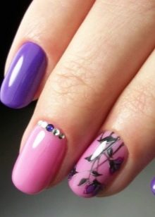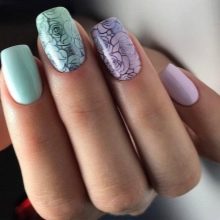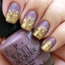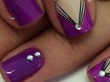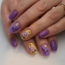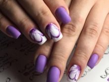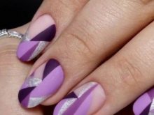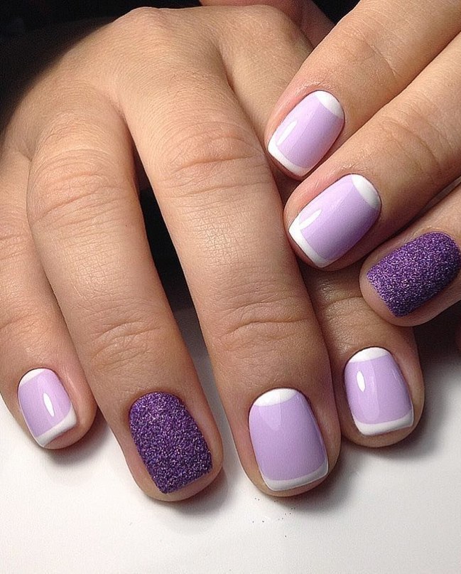 - violet tint will look beautiful in manicure, if you add a delicate green or beige contrast to the design, as well as the color of a dusty rose, cream, gray or black;