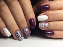 Dark contrasts, added to the lilac color, change the perception of manicure, making it more mature and evening. Light companions can soften the dark tones of lilac, which makes the manicure easy and especially gentle.