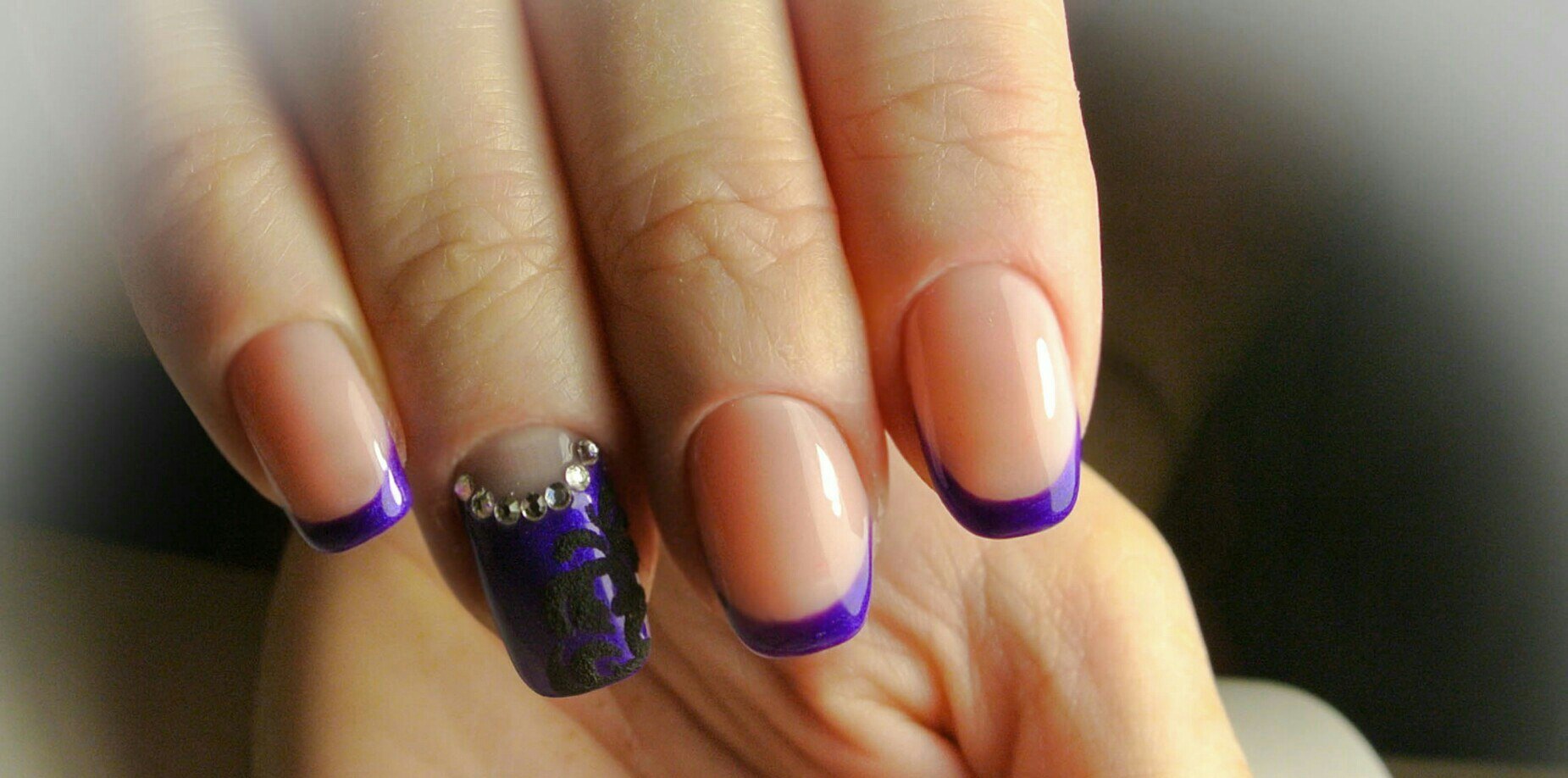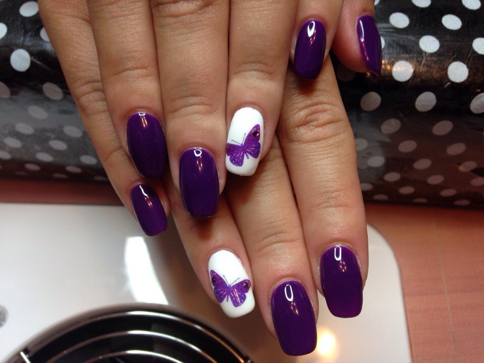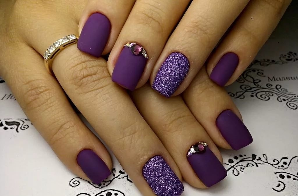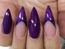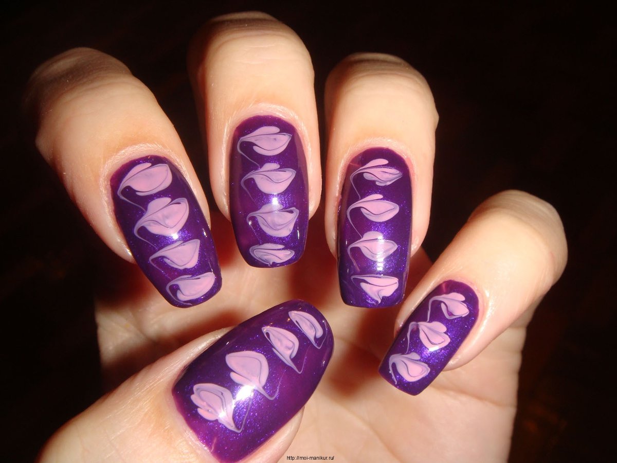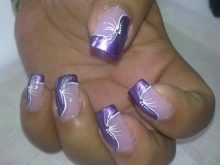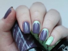 - Veil. This technique is especially beautiful when using rich and dark purple tones. Externally, it resembles the effect of nylon stockings, performed by adding a few drops of lilac pigment to a transparent gel polish. This coating is used to paint the nail, then paint a simple acrylic paint on it, and at the end cover it with top and dry it under a special lamp.