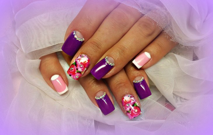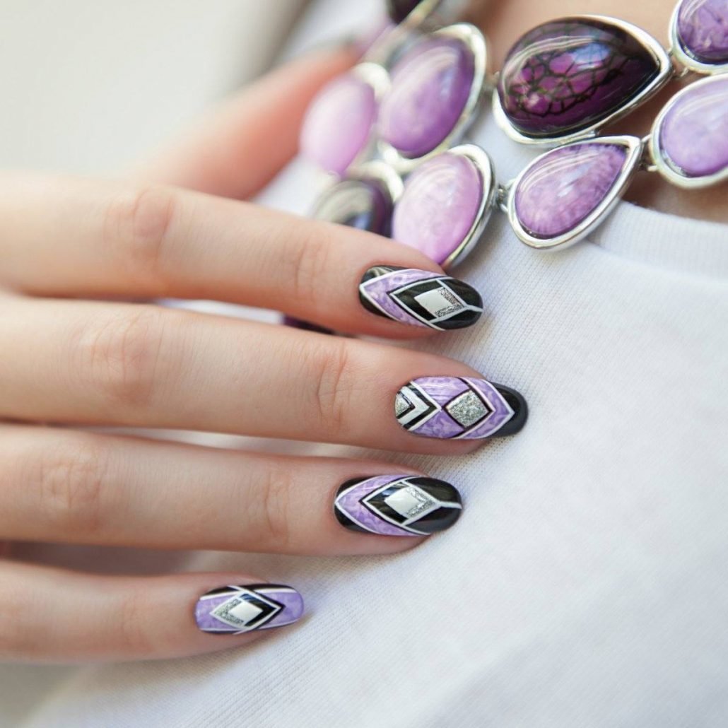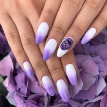 Let us briefly denote the basic decoration techniques that are relevant for the lilac manicure of this season.