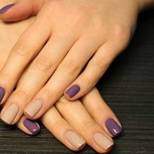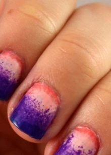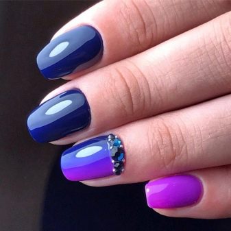 As for the coating effect, you can use a matte gel polish or cover it with a mat finish. Beautiful here will look and receive transfusions of related shades. You can decorate short nails with a smooth transition from classic to dark lilac or even purple.