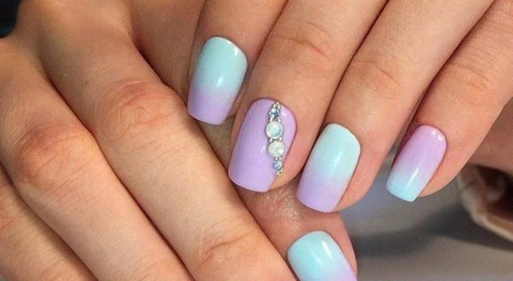 - Gradient. The second name is Ombre. Under the design means a smooth play of tones, while apparently one shade turns into another, due to which the coating looks not only unusual, but multifaceted. Such a technique is often used as an independent design, but it is often the basis for decoration. If the palette of matching shades uses contrasting pastel colors, this design looks very impressive.