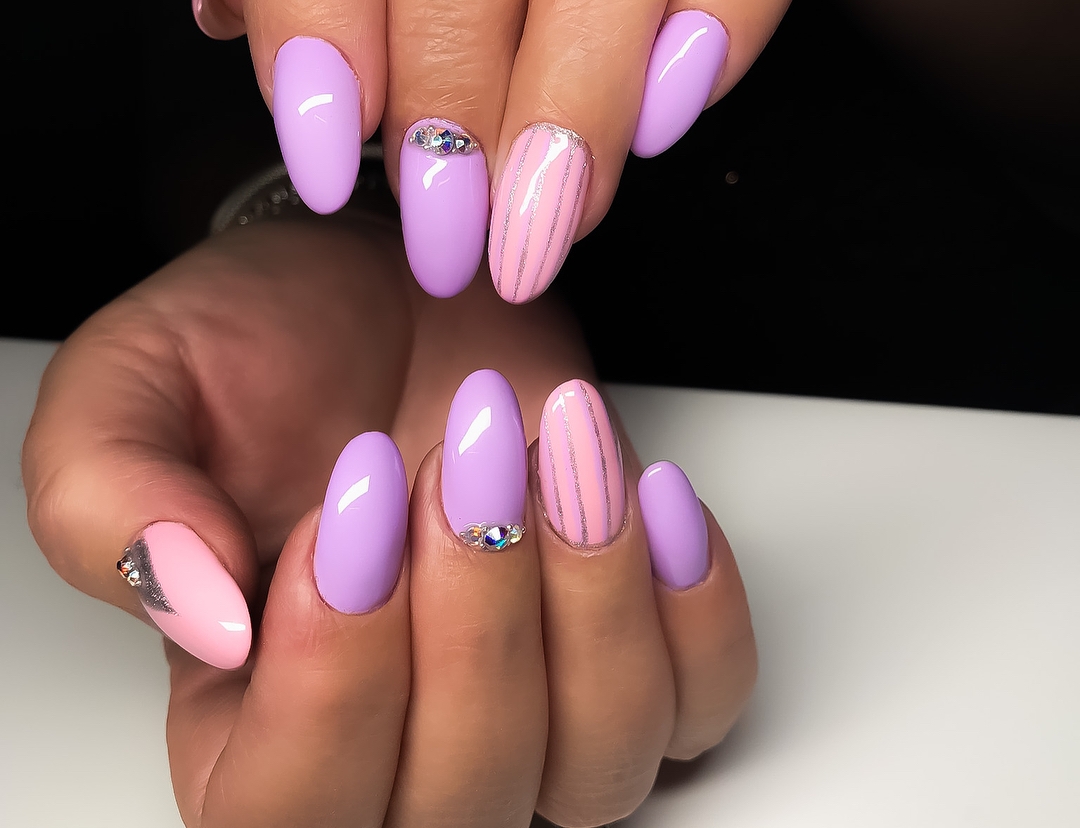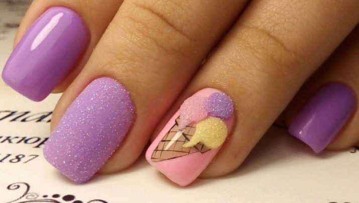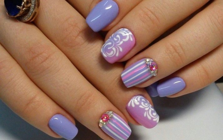 However, in order for women not to puzzle over the harmonious combination, stylists offer a number of ready-made solutions. According to their opinion, it is possible to complement lilac manicure on the basis of their temperature and saturation, for example: