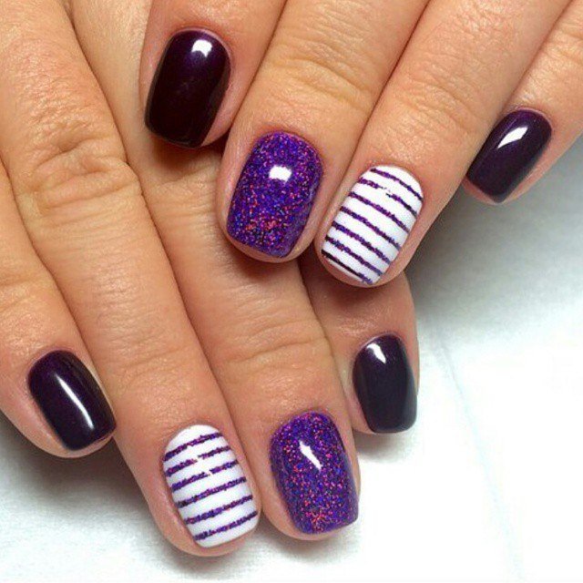 - Using the technique of gradient, lace pattern and vertical stripes. Stylish manicure for special occasions.