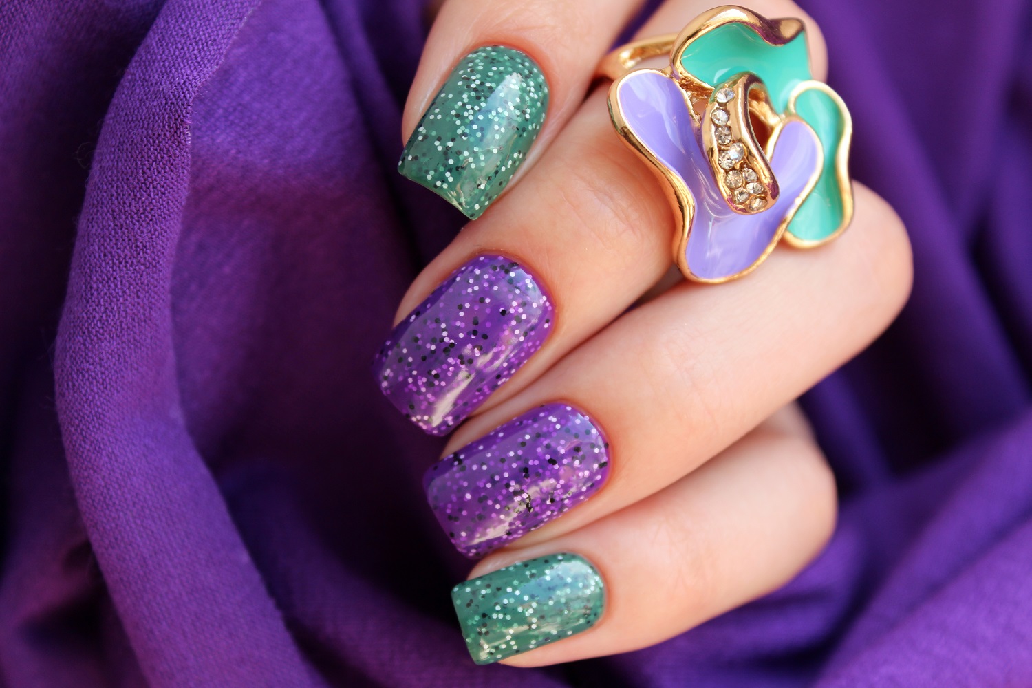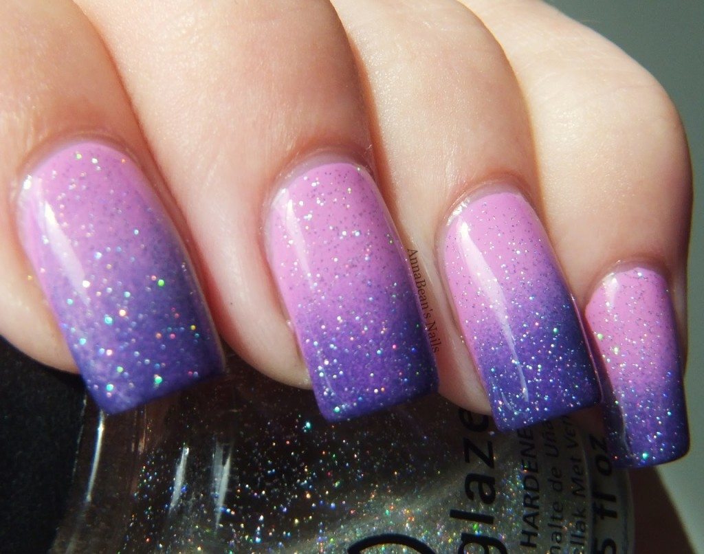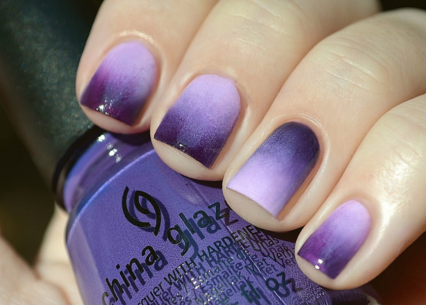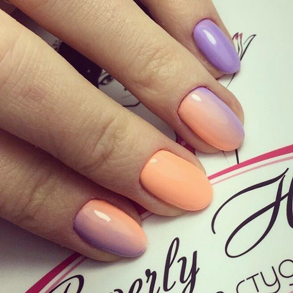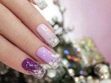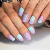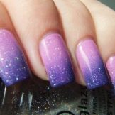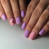 The effect of the transition of color or change its brightness is relevant to this day. In this technique, you can combine several shades of lilac or combine different colors of the spectrum. Such a manicure is rarely supplemented with sparkles, stones and other details, so as not to overlap the artistic technique. The design looks great on nails of various lengths and is suitable for women of different ages.