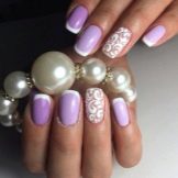 Like other colors of the spectrum, the lilac shade must be properly combined with accessories, decorations, style and color of clothing of the owner of a manicure. Too bright decor can destroy the integrity of the image, and too light or faded shade will look inexpressive and boring.