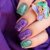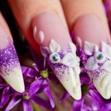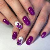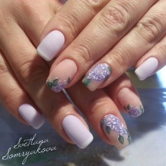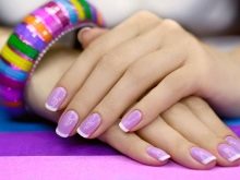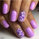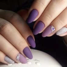 When making a manicure, do not forget about the texture of the coating, which plays an important role in the visual perception of the design. For lilac manicure fits both matte and glossy version. Combining the two techniques and the design of a smooth transition from a brilliant gloss to a velvet matte will not remain without attention of others.