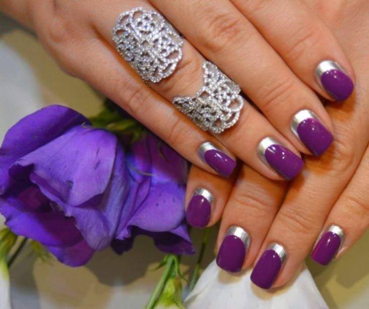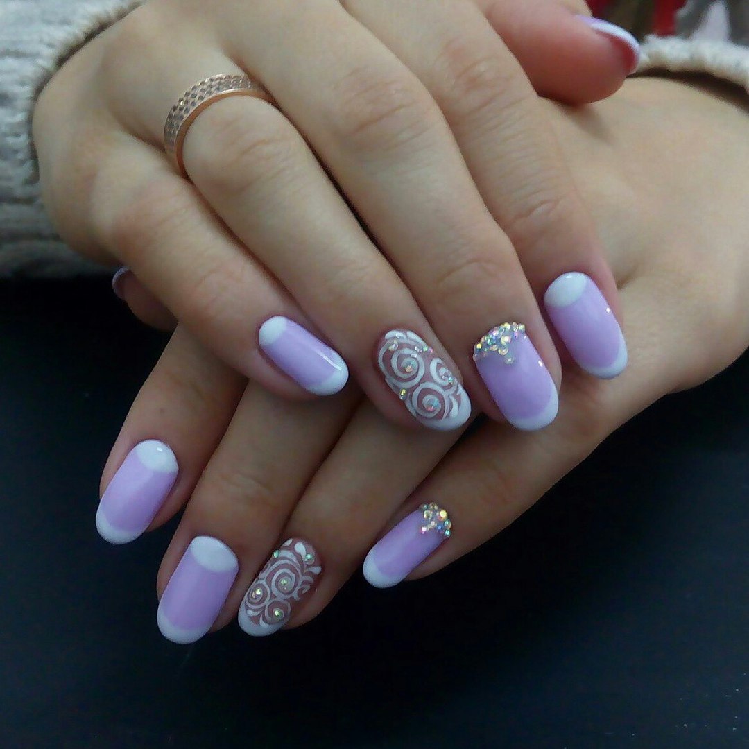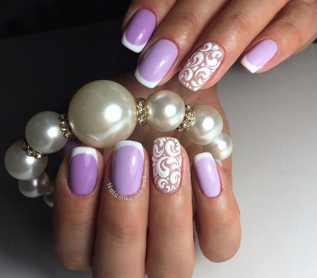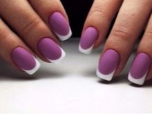 Manicure french is a classic, so it is always relevant and in demand. The most popular combination in the design of such decor is the duet of lilac and white, where the first color is used as the base, and the second is the addition for painting the edge of the nail.