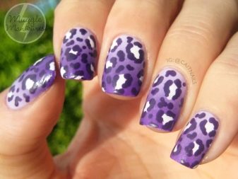 Leopard nail painting or print in this style is an original and fashionable nail decor.This technique is appropriate even in lilac manicure. On the soft colored background, black spots look especially charming and original. You can decorate such a manicure in two variations - completely cover the nail plate with spots or apply a pattern in only one part, for example, in the form of a track.