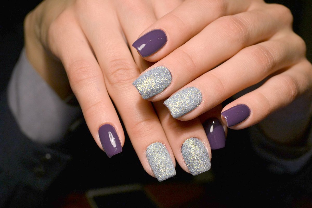 Lilac lacquer in combination with shiny details will look solemn and elegant. This duet is perfect for a festive manicure. Shining elements will attract the attention of others and make the manicure more expressive. Complement the image of well-chosen jewelry and accessories.