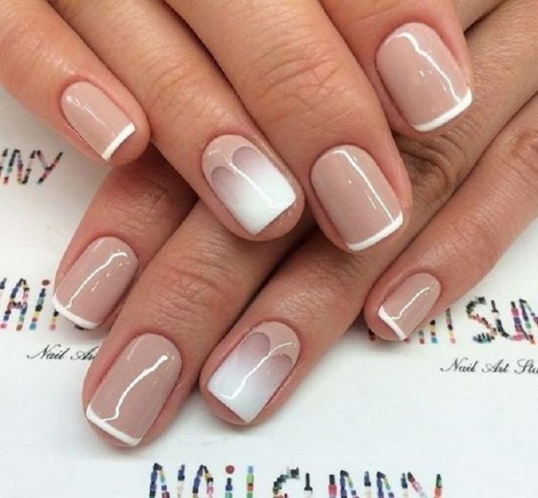 You can take as a basis the French manicure, and the accents to perform in a classic manner. For example, lace motifs will look beautiful in this design over the entire area of accent nails.No less interesting are the accents of the monogram, this print theme is ideal for light and gentle tones of a calm group. In addition, french is an excellent base for geometric designs.