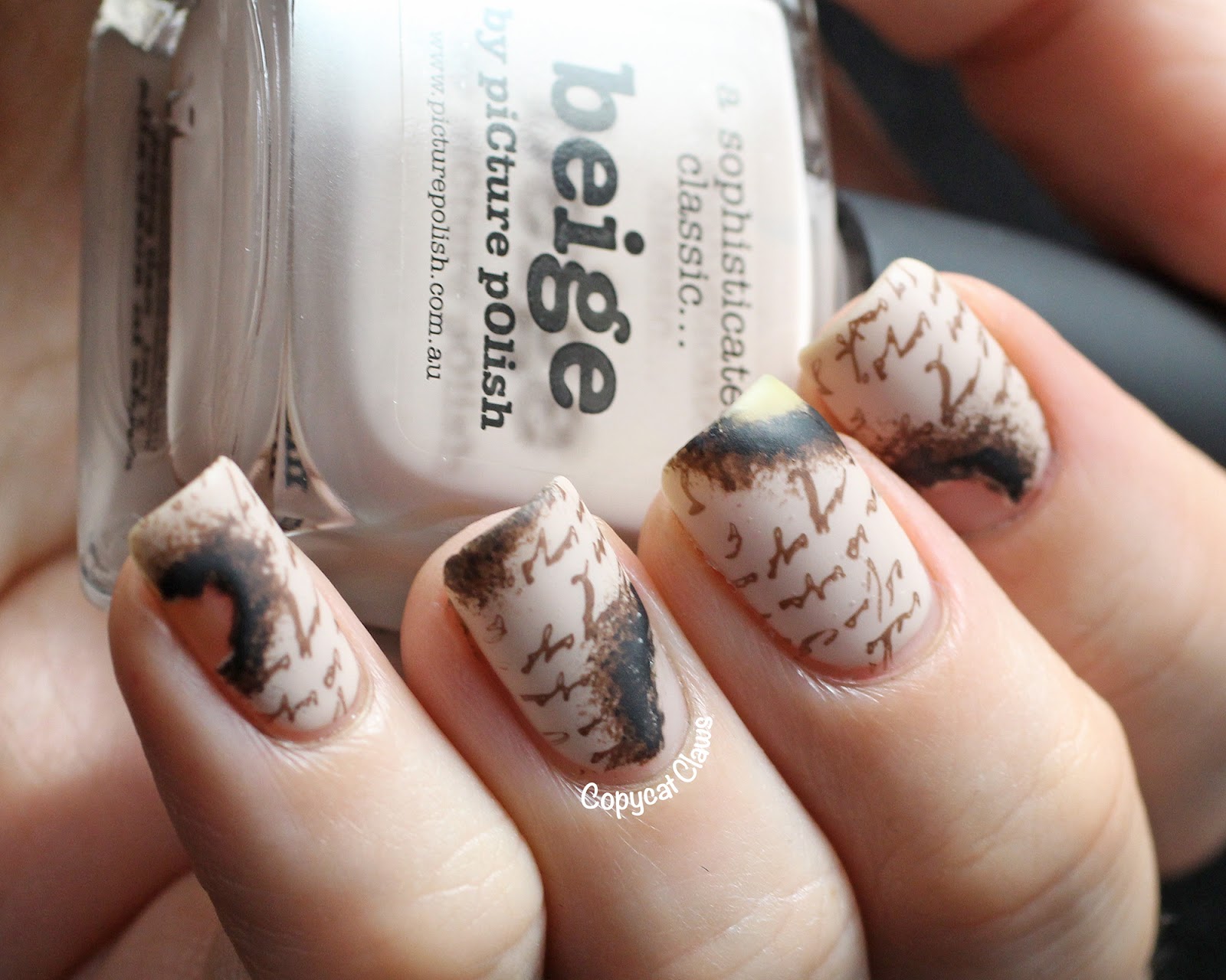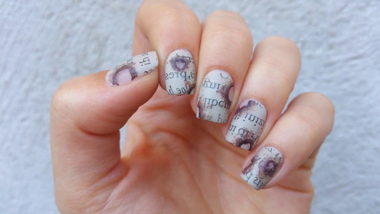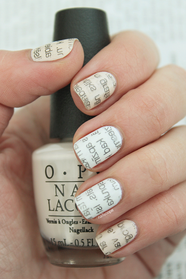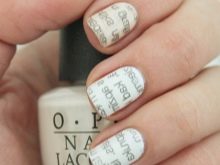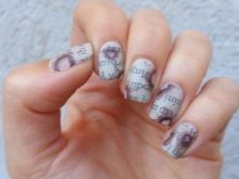 Newspaper Manicure - Another one of the trends of this season. And it looks better on the bright bases. By printing newspaper pieces on the nails, you can get not only different letters, but also stylish patterns, as well as hieroglyphs, which today are considered to be a trendy nail design. Prints, covering with a layer of top material, can be supplemented with a variety of decor, which will make it possible to add a hint of vintage to the design of manicure.