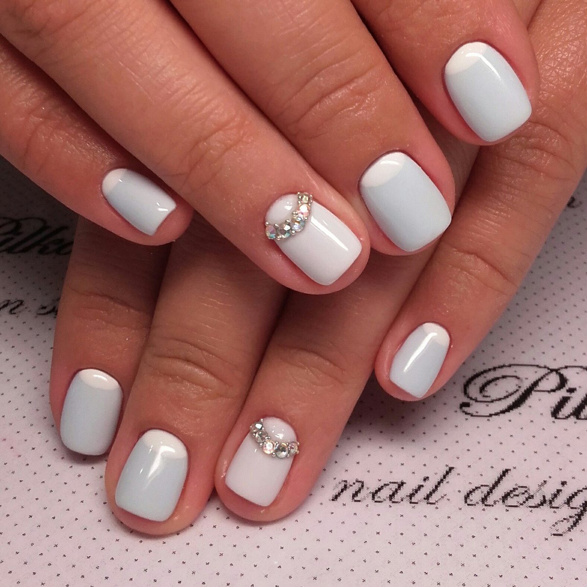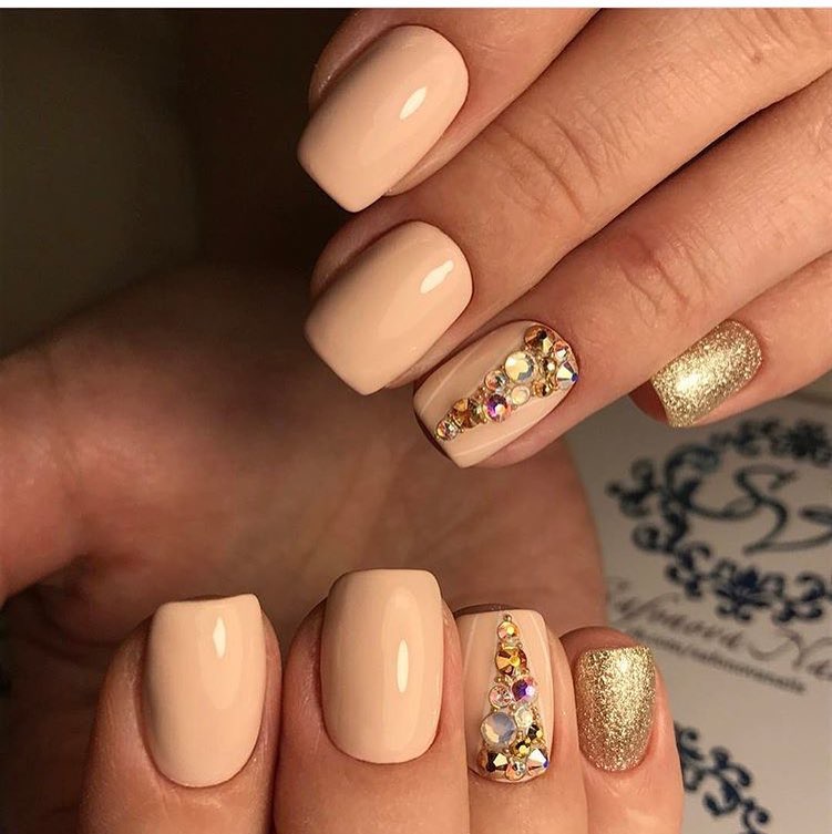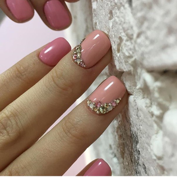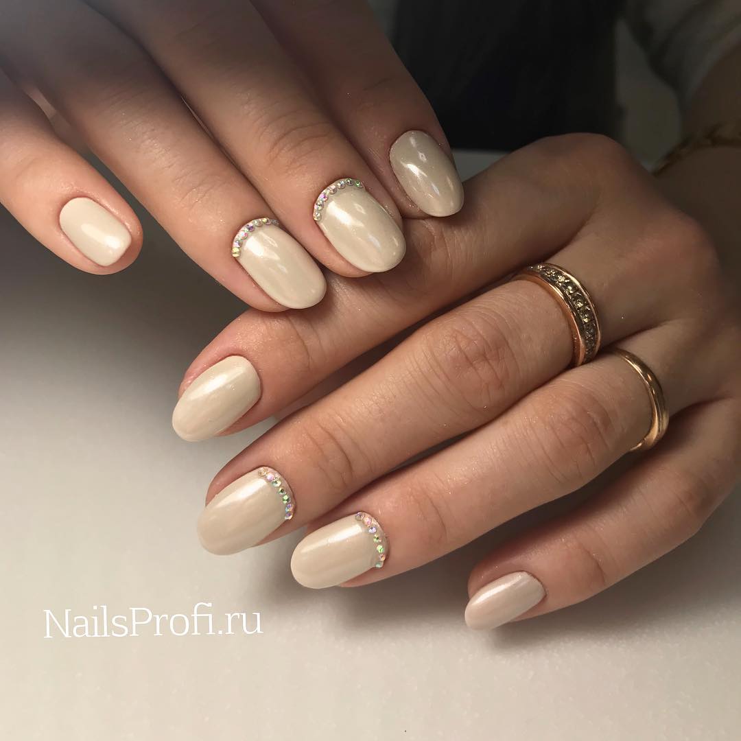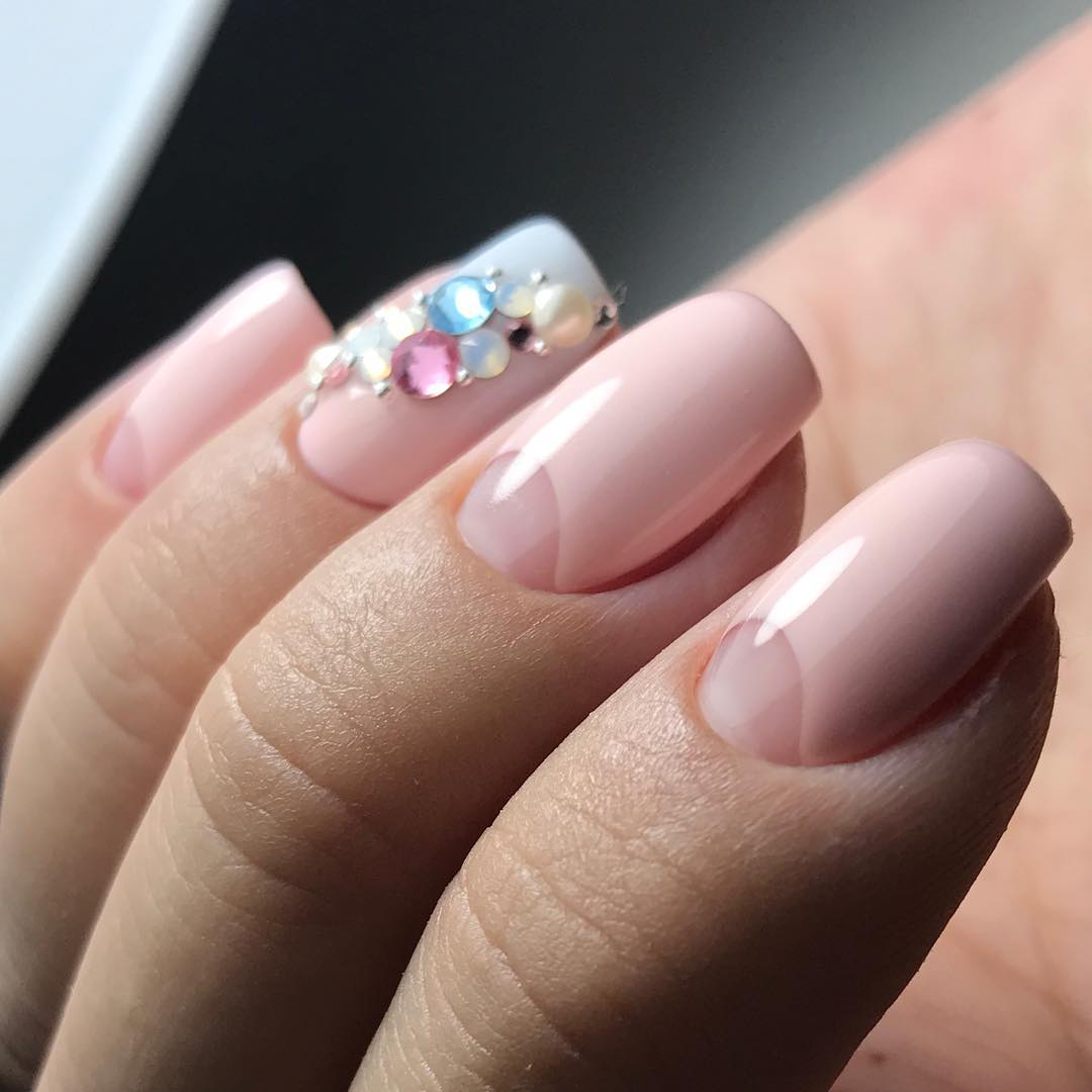 Rhinestones today are used in smaller quantities compared to last season. And the matter is not even that fashion today seeks for minimalism and lightness. This decor without dosage makes the gentle tones of manicure less expressive. It can destroy even the ingenious idea of decoration, because we must not forget that the pastel colors are noble in themselves. The emphasis on the texture of such pigments is far from always appropriate, especially since the design with rhinestones should not compete with women's jewelry in the chosen image.