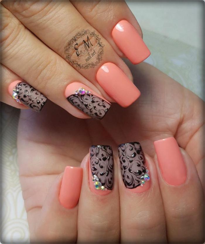 As for the publication, rhinestones fit for him. But such a design as flowers or cute patterns with bears will look at least unsuccessful here. Light designs for a vacation or a trip to the sea are also not combined with luxurious evening dresses.