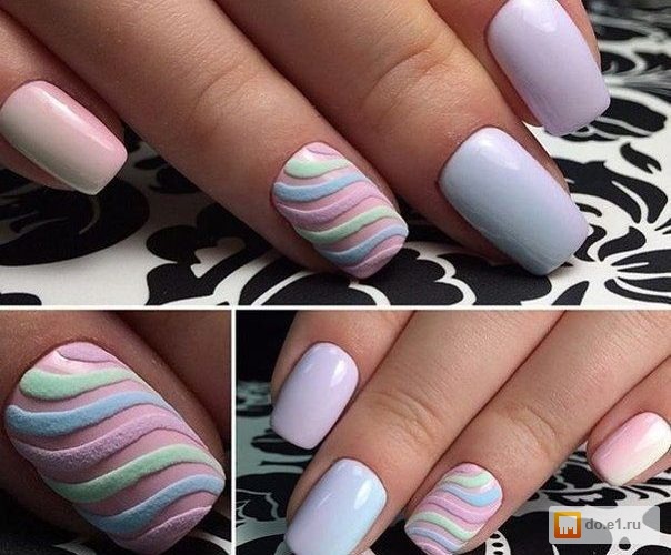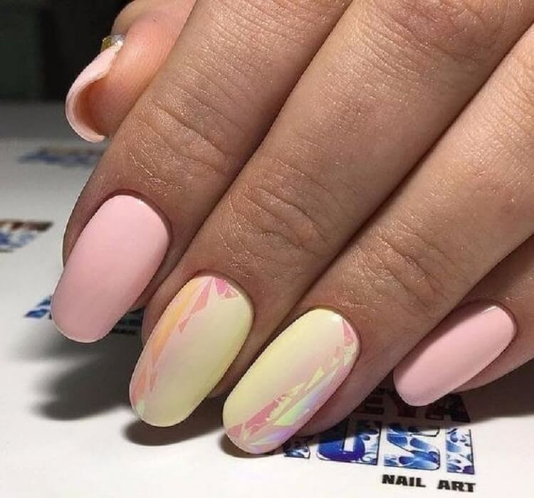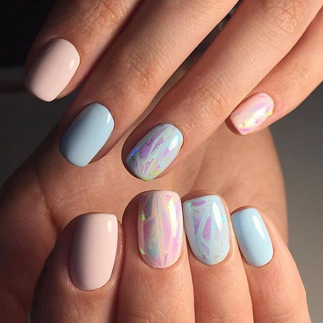 Regardless of what varnish products the nail industry offers today, they are all suitable for pastel manicure. In addition, each type of coating will differ in its texture and carry a special emotional coloring to the design. For example, matte pastel-colored pigments improve the manicure of any technique, due to which it looks stylish and status.