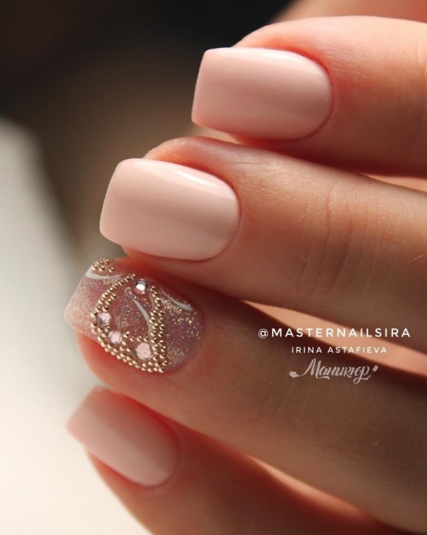 Manicure in pastel colors can be decorated with different decorations. Moreover, the choice of decorative elements is so great that it is sometimes difficult to dispense jewelry when making accent nails of a manicure. The best techniques that allow you to bring a different mood to your design today are: