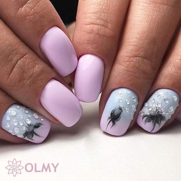 - An incredibly gentle solution with dandelions will appeal to any modern fashionista. Involved modeling gel with a transparent texture, giving the design volume.