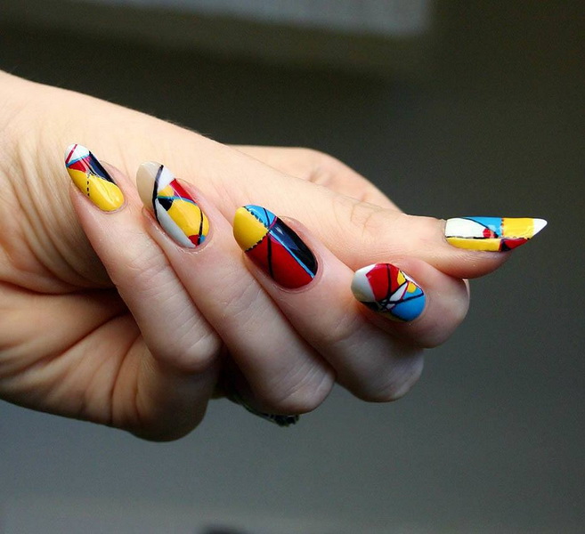 To create an attractive manicure, you can use a variety of colors. It is important to combine them harmoniously with each other. For example, neon green and neon lilac will not look good in one composition. It is better to use a muted version. But the crimson, yellow and blue will be a great combination. It is worth remembering that bright colors will look good with pastel tones. They are best sold with beige, white, black colors. Do not be afraid to experiment to get a creative colorful manicure. For example, you can use a red tone with a pink palette, and a purple one with a brilliant silver one.