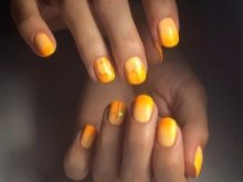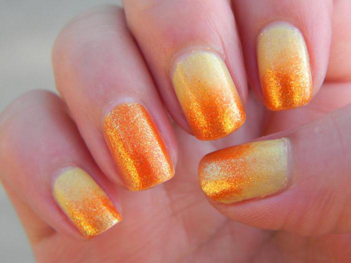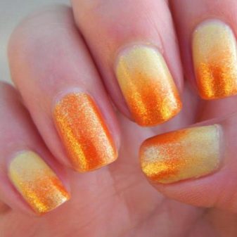 In the case of a yellow-orange manicure, an ombre technique, that is, a gradient, will be particularly well applied. This is the second name for this type of drawing on the nails. But if you delve into the details, then the ombra differs from the gradient in that in this case it is not a transition to a different color that is carried out, but a smooth lightening (or darkening) of the tones.