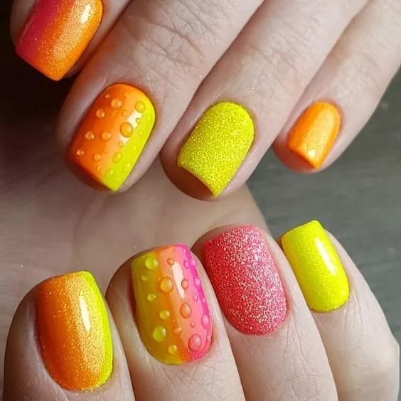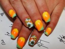 Yellow and orange, being related colors, are perfectly combined. Sunny shades will be able to bring their cheerful and playful warmth to where the bearer of such a manicure will pass.