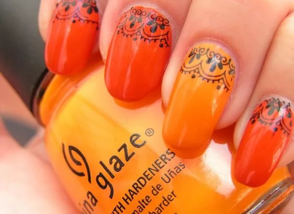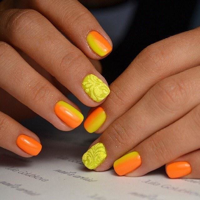 And now, after all the introductory information, it’s time to choose your own version of the orange-yellow manicure.