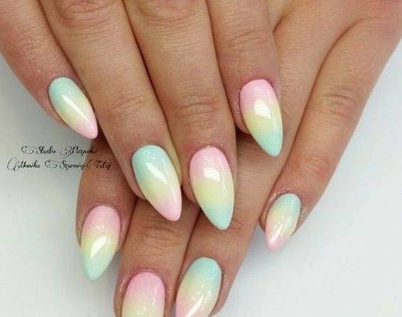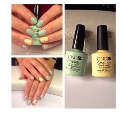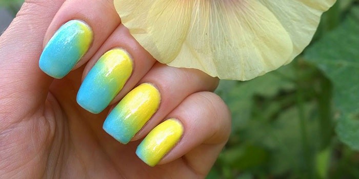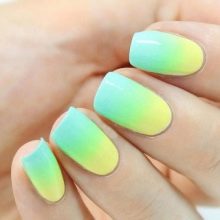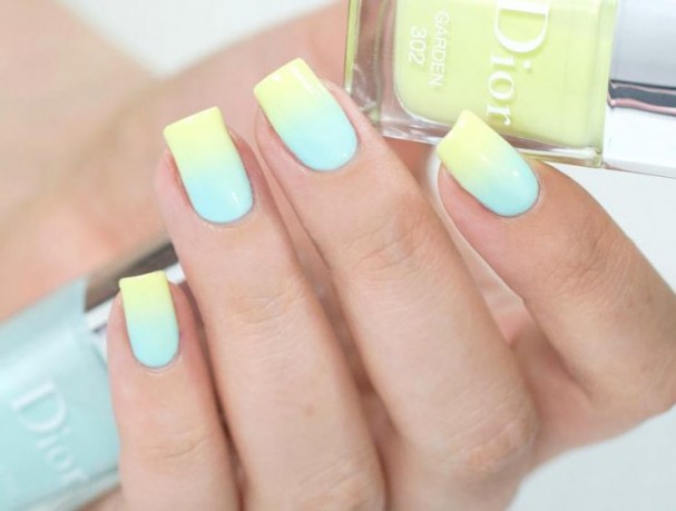 To learn how to make a yellow and mint ombre manicure, see the following video.