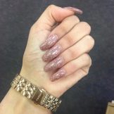 - The greater the length of the nail, the less catchy the design should be made. It is recommended to avoid a lot of rhinestones and other decorations, let it be a concise and strict version. Ideally, geometry, some sparkles and pebbles.