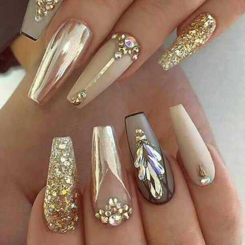 The form of "ballerina" allows you to create a variety of designs manicure, the most interesting of them below.