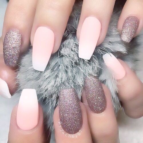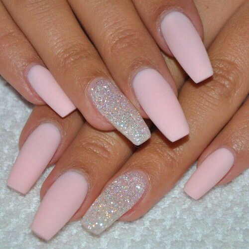 Glossy and matte finish is an excellent option for the “ballerina”, but velvet or velor will look even more impressive. You can cover all the nails with this effect, and you can choose a few nail-tips, and only emphasize them. It is suitable option that combines velor, gloss and matte finish. This also includes design and decorative sand, this design also looks impressive on the nails in the form of "ballerina", but it is recommended to cover this element with 1-2 nails.