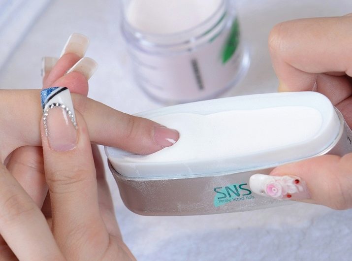 - To keep the manicure on natural nails for a longer period, you can strengthen the nail plate with special varnishes used as a base. Acrylic powder is also suitable.