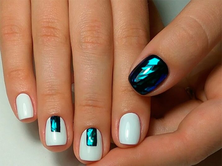 Glass in this case, it is recommended to match the tone to the varnish. In this case, the nails can be painted in different colors, complementing them with inserts of snow-white "fragments".