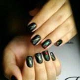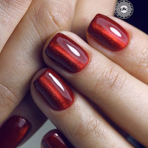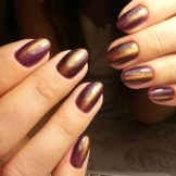 Magnetic lacquers with the effect of a cat's eye are gaining popularity., which consist of a mixture of conventional pigment with metallic magnetic grains of one or more colors. After applying the particles are attracted by a magnet. A novelty appeared on the same basis - “3D cat” or “chameleon”.