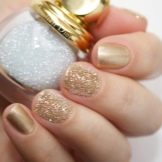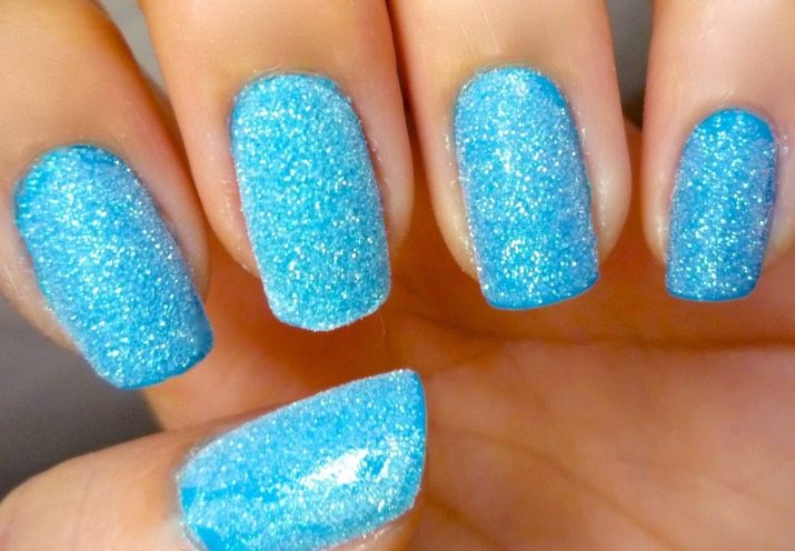 Sand nail polish can be applied not only on long but also short nails. Such a manicure is also called sugar, because the sand grains create an unusual rough structure. Numerous grains can be of a bright or neutral shade, matte or shiny texture.