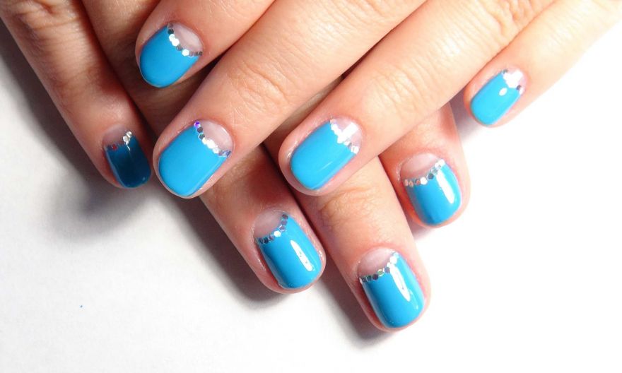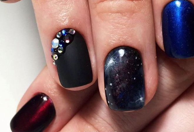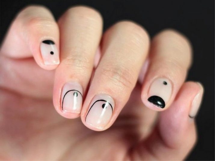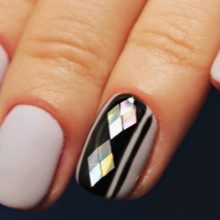 Various decorative elements will help to make a manicure unique: rhinestones, stripes, dots.